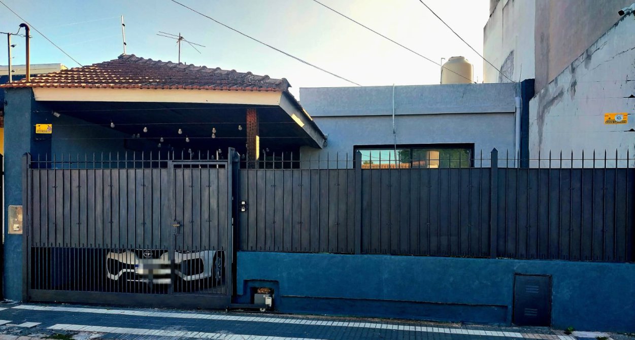 lote de 8,66X38 mts. Cub 120 m2 aproximados, de construcción en una sola planta, recién restaurada integralmente. Consta de un jardín al frente con portón automatizado de acceso a garaje cubierto para un vehículo o camioneta; y posibilidad de guardado de otro vehículo en sector descubierto. Frente de reja con chapa de acero galvanizado y cerco eléctrico de seguridad sobre reja, en frente y sobre perímetro de medianera en techo de garaje. El cerco eléctrico cuenta con alarma sonora de contacto o corte. Todo el frente se encuentra confeccionado con revestimiento texturado plástico (tipo Revear).