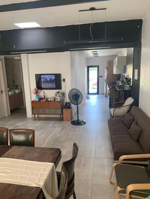 El trabajo de restauración integral consistió en: Sustitución integral de pisos, contrapiso y carpeta. Sustitución completa de instalaciones de electricidad, agua y cloacas. Se instaló una red de agua de termofusión, con sistema de cisterna enterrada de 1000 lts en jardín, bomba elevadora, tanque tricapa de 1000 lts sobre loza de techo, bomba presurizadora, colector con 5 bajadas de agua independientes. Se instaló red eléctrica nueva desde bajada de Edesur, con nicho apto para trifásica. Línea independiente que cruza todo la construcción hasta sector del parque proyectada para futura fase independiente en sector trasero de la vivienda. Líneas eléctricas discriminadas según consumo (A/A, tomas luces y enchufes) y sectorizadas por ambientes. Instalaciones para A/A en living comedor y en los 3 dormitorios. Todos los componentes de teclas y enchufes son de la colección Cambre Siglo XXVI color grafito. Se recambió la instalación cloacal completa hasta la conexión en vía pública. Se instaló red de gas nueva termofusión (SíGas). Todas las aberturas de la casa son de aluminio negro (Aluar) con DVH con laminado de ambas caras. Los ventanales cuentan con black-out tipo roller. Todos los ambientes cuentan con amplia luminosidad natural y las características constructivas garantizan buen desempeño térmico. El inmueble cuenta con un sistema cerrado de seguridad por videocámaras (4) con función nocturna LED (visión color durante la noche) Living comedor conectado por concepto “abierto” con amplia cocina con salida al parque. La cocina cuenta con anafe a gas en tono negro de muy buena categoría, mueblería moderna con sistemas neumáticos, soft touch, sistema telescópico y mesadas de granito negro. Bacha doble Jhonson, con dispenser de detergente y grifería monocomando con salida diferenciada de agua para beber desde filtro de osmosis inversa debajo de mesada.