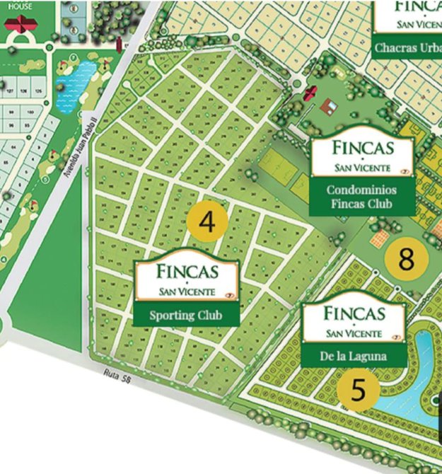 Cercano a la ciudad de San Vicente; Ruta 6; Ruta 58 y a la nueva Autopista del Buen Ayre