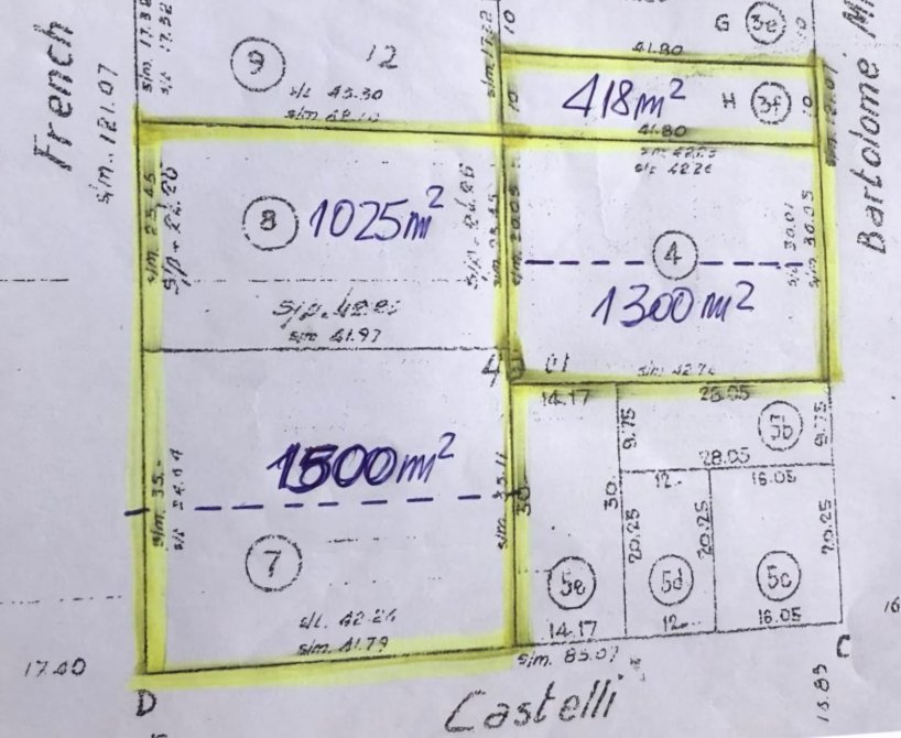 CUATRO LOTES EN INMEJORABLE UBICACION SOBRE CALLES FRENCH Y CASTELLI (EN ESQUINA) Y BARTOLOME MITRE